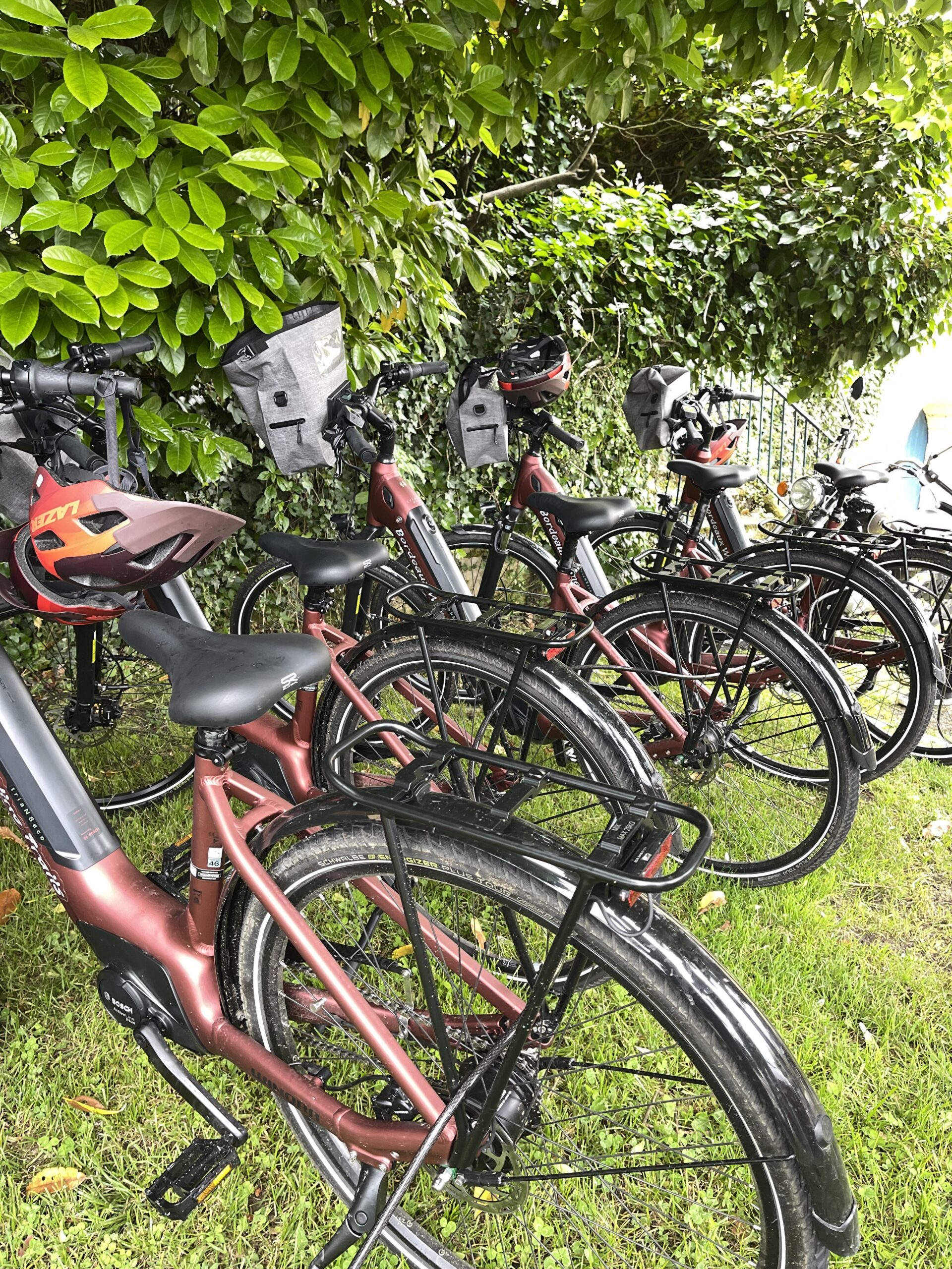We met at the Bordeaux Tourism Office (just two minutes from my hotel), then set out on a 30-minute drive into the lush countryside. Once we arrived at Château Grangey, we geared up, got fitted for our e-bikes, and started riding past vineyards, châteaux, and panoramic views that honestly felt straight out of a movie.
